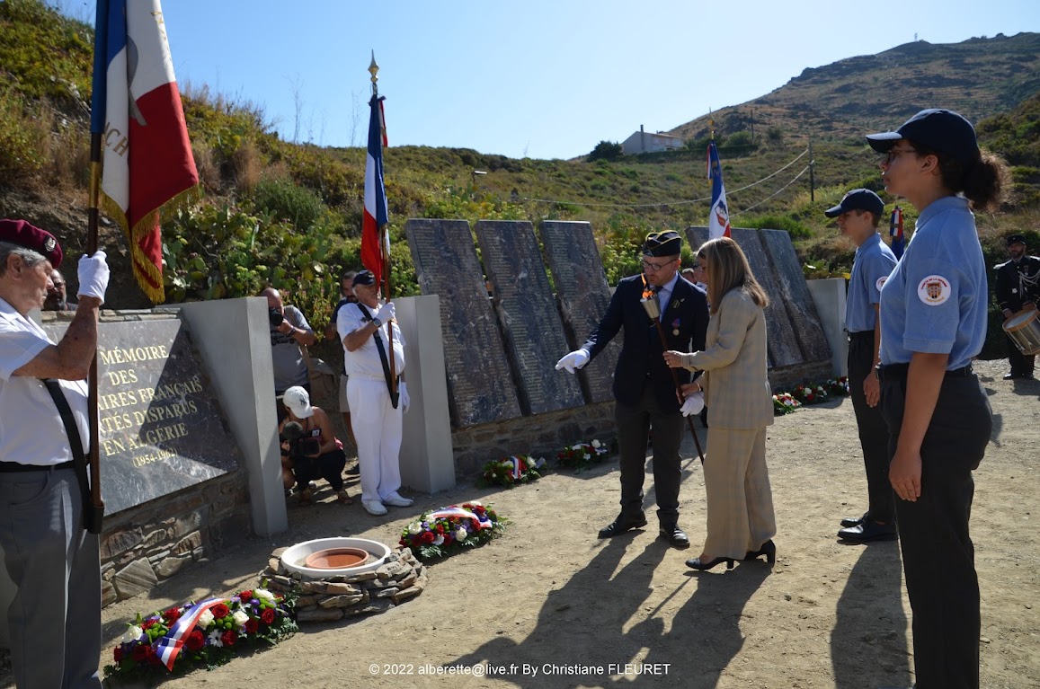 - Enfin, cette belle journée, ce monument, c’est grâce à vous, M. le Maire, car vous avez, depuis ma première demande et sans vous douter des soucis que vous alliez donner à votre équipe municipale (moi non plus d’ailleurs !), immédiatement accepté ce projet assez irréaliste, mais qui, grâce à vous et à tous vos collaborateurs, est devenu réalité. Il reste certes, encore à faire, mais je suis certain que la ville de Port-Vendres saura développer, embellir et entretenir ce site qui s’inscrit maintenant dans le patrimoine de la ville, mais également, au niveau du département des Pyrénées Orientales, dans une sorte de parcours mémoriel autour de la mémoire de la guerre d‘Algérie, avec le site de Rivesaltes pour les harkis et le monument de Port-Vendres pour les disparus civils.